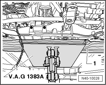 - Place for example a block of wood - 1 - between (V.A.G 1383 A) and subframe.