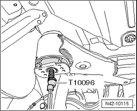 - Replace subframe bolts one after the other on both sides with Locating Pins T10096 and tighten them to 20 Nm.