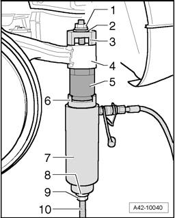 - Lower subframe 10 cm using Engine-/Gearbox Jack VAG1383A.