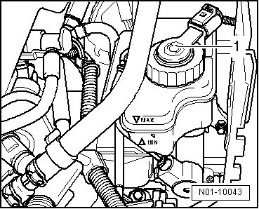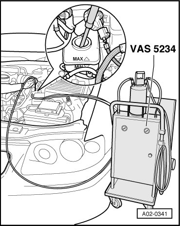 - Extract as much brake fluid as possible using intake hose Brake charger/bleeding unit (VAS 5234).