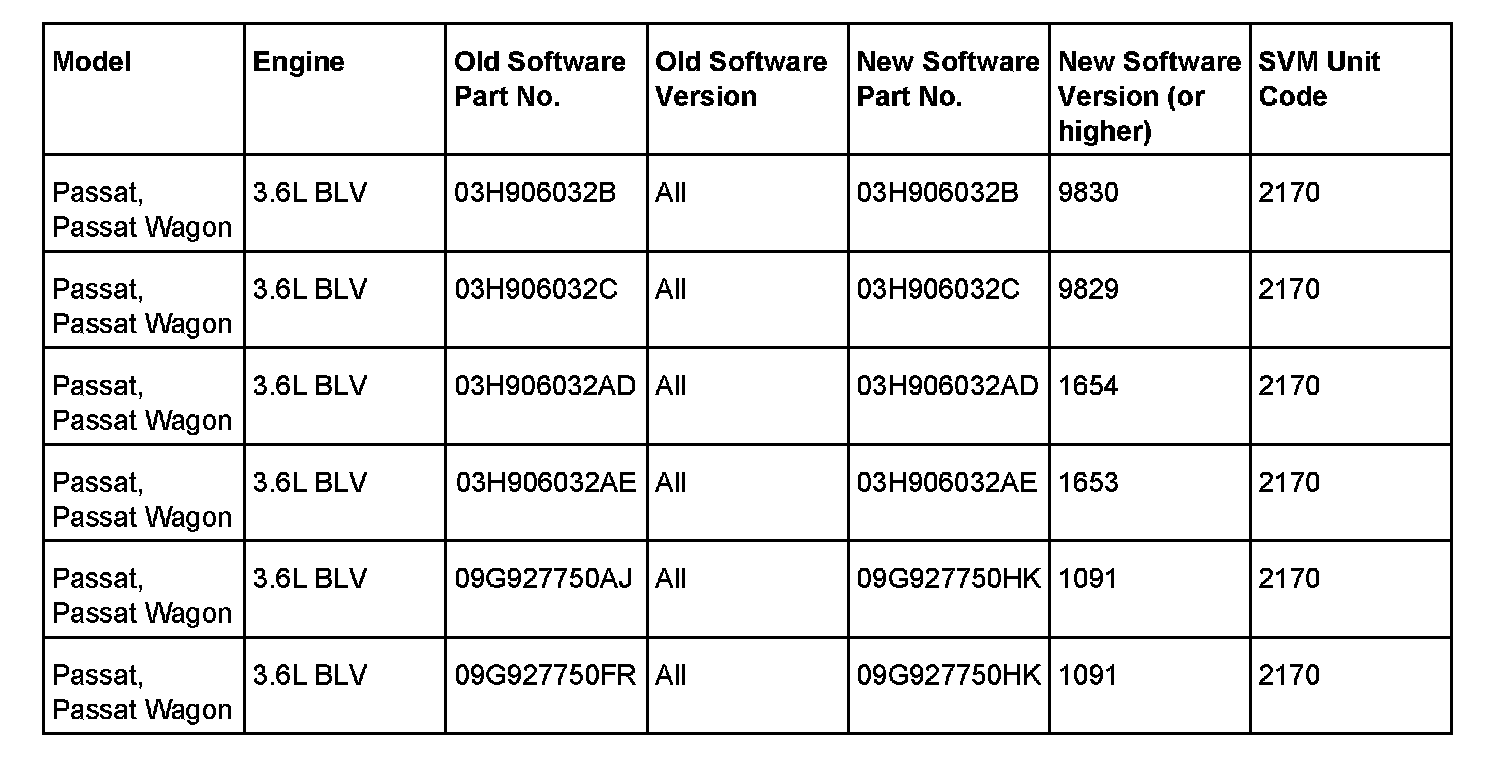 ^ Update the Engine Control Module using the Software Version Management (SVM) and the SVM Unit code as listed in the table shown.