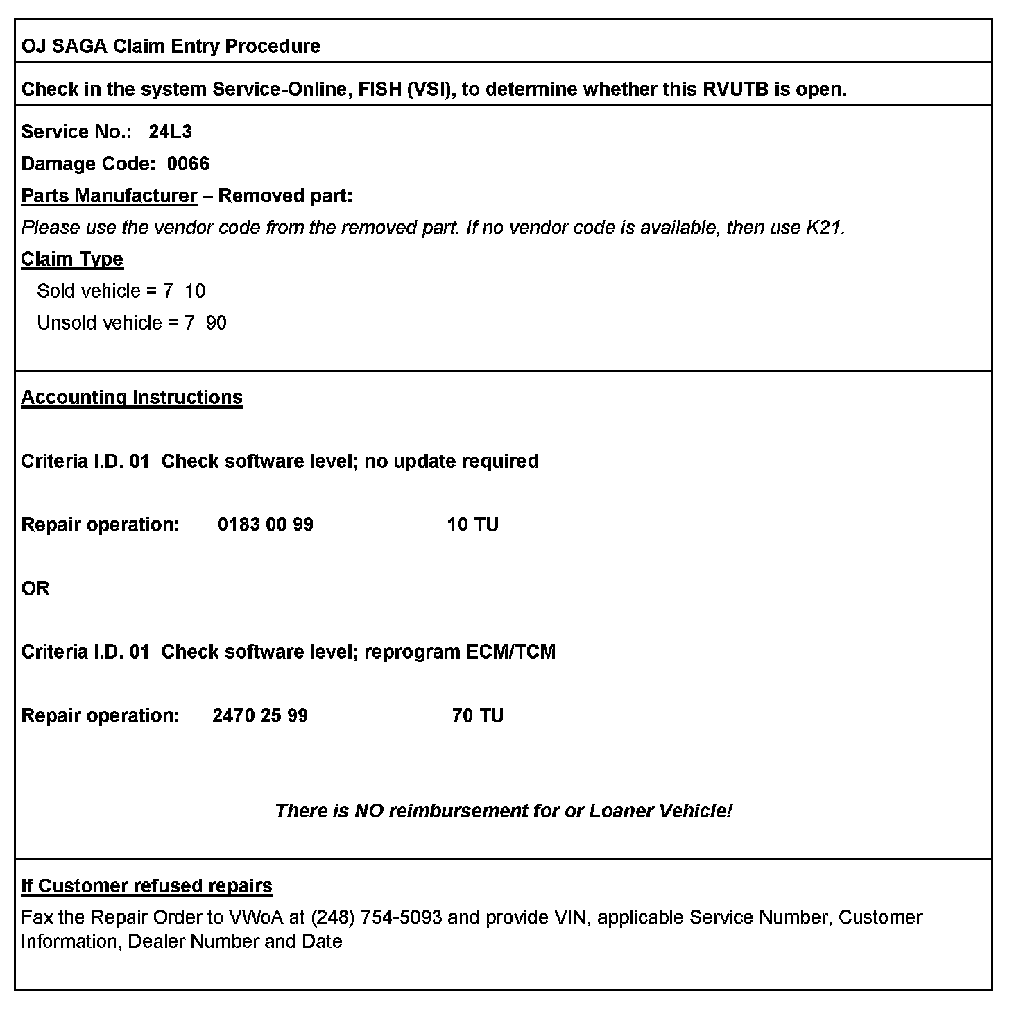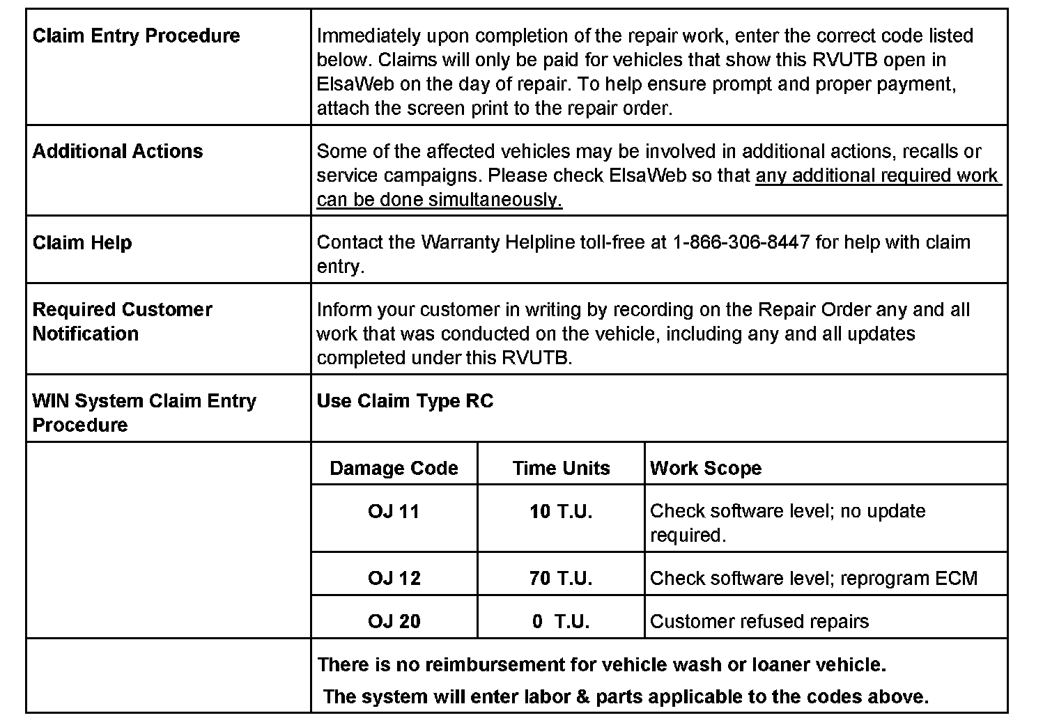 1. VIN must show (OJ) code open in ElsaWeb on the day of repair.