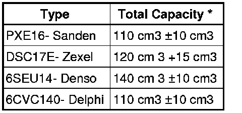 * This quantity of refrigerant oil is in a replacement compressor and equates to the total capacity.