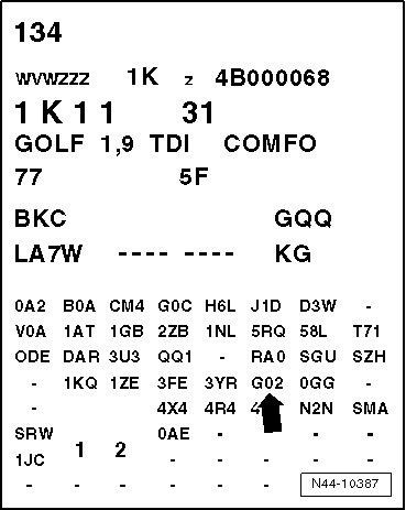 In this example the vehicle has basic suspension G02 - arrow - installed.