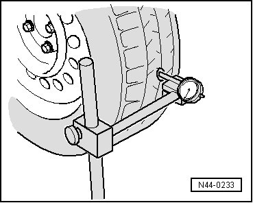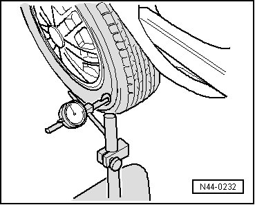 If the measured values for radial and lateral run-out of the wheel disc are within the specified values, then the tire has excessive radial or lateral run-out. In this case, the tire must be replaced.