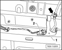 - Align clamp - 1 - to marking on catalytic converter - 2 - .