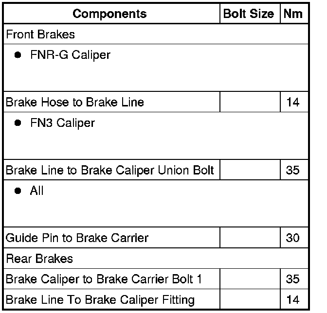 Brake System - Mechanical Components - Fastener Tightening Specifications