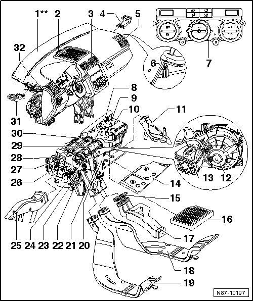 • Disassembling and assembling => [ Climatronic Heating and A/C Unit ] Climatronic Heating and A/C Unit