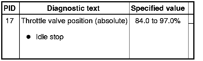 - Check specified value of throttle valve position (absolute) at idle stop: