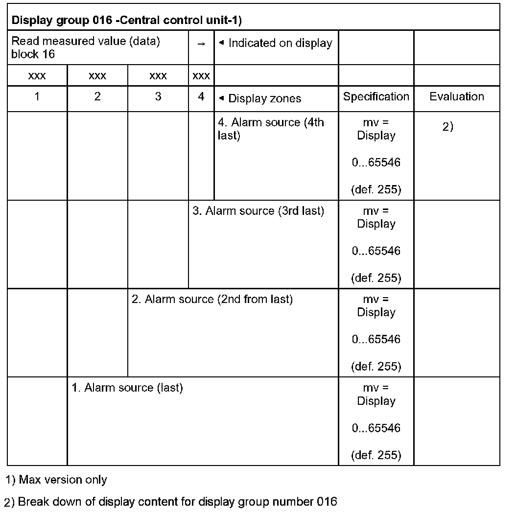 Break down of display content for display group number 016