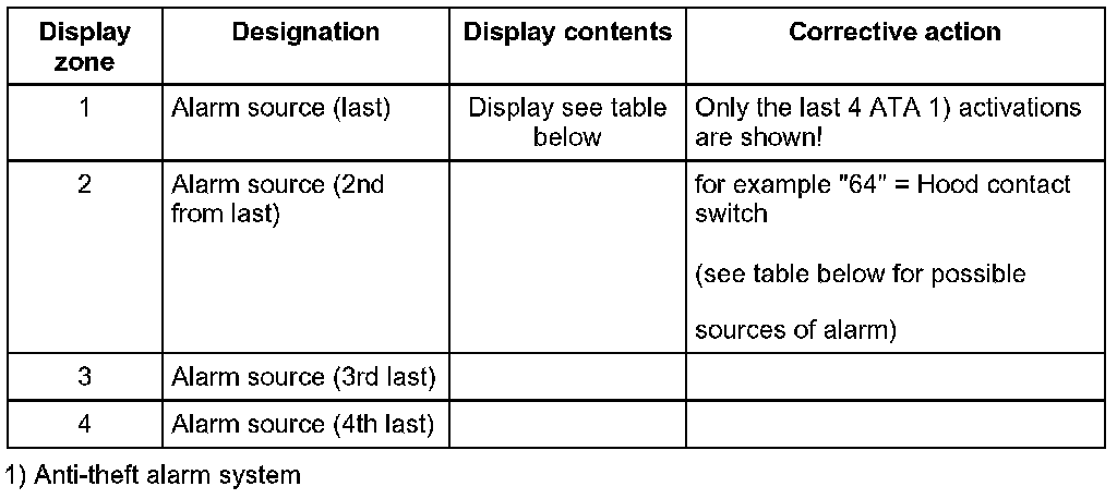 Possible sources of alarm Display