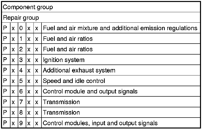 The following tables provide a breakdown and explanation of the DTC code.