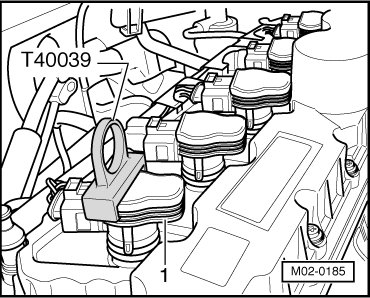 - Pull out all ignition coils with power output stages - 1 - upward using ignition coil puller (T40039).