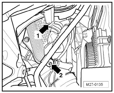 - Remove the nut - 1 - and remove the clip - 2 -.