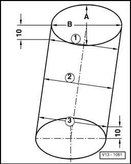 Measure diagonally at 3 positions transversely - A - and longitudinally - B -.