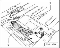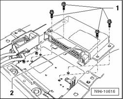 - Unscrew the four mounting bolts -1- and remove Special Purpose Vehicle Control Module J608 -2- upward from vehicle.