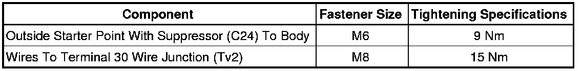 Fastener Tighten Specifications, External Starting Point