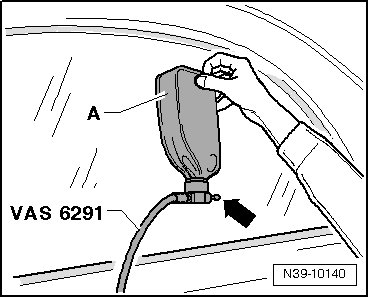- Screw oil container - A - with valve closed - arrow - onto Charging Device F/Held 2 Coup. (VAS 6291).