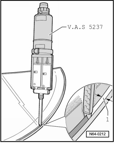 • With help of two Suction Cups (V.A.G 1344) install window in window opening, center and press in onto the spacing lip.