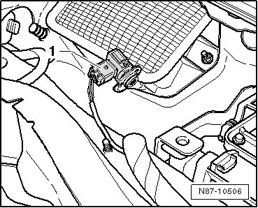 - Release the air quality sensor (G238) - 1 - and rotate it to remove it from the bracket on the intake air grille.