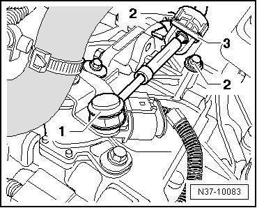 - Remove the selector lever cable - 1 - from the lever/shift rod by hand.