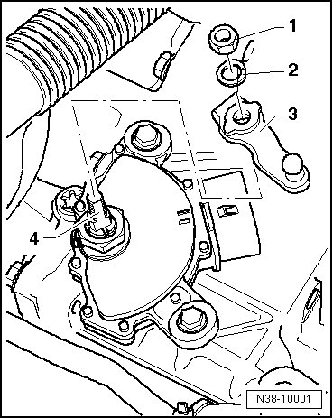 - Install the spring washer - 2 - and nut - 1 - onto the shift rod - 4 -.
