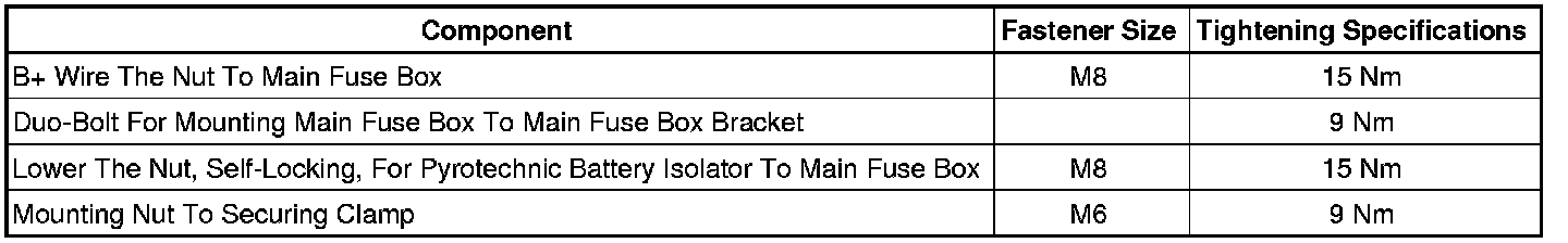 Fastener Tighten Specifications, Main Fuse Box