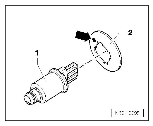 Convex side with marking - arrow - faces toward the oil pressure/temperature sensor - 1 -.