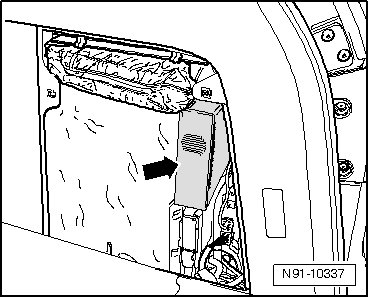 The TV tuner is installed in the luggage compartment behind the right side trim flap - arrow -.