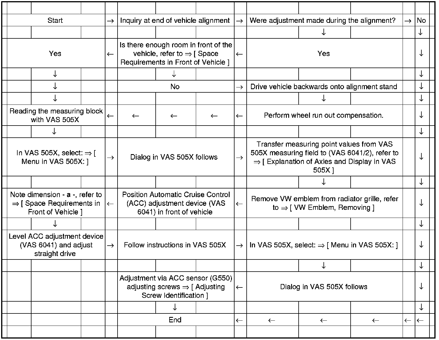 - Observe the notes in your alignment unit and specifications in general information. Refer to --> [ Adaptive Cruise Control Calibration ] Adaptive Cruise Control Calibration.