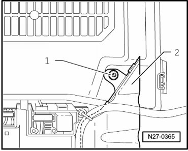 - Remove bolt - 1 - and pull off air vent - 2 - upward.