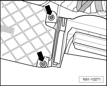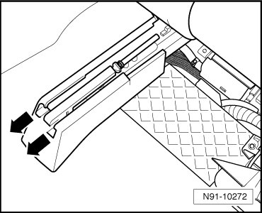 - Remove seat rail cover in - direction of arrow -.
