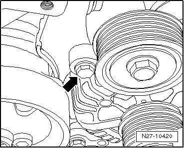 - Remove generator mounting bolt - arrow - (23 Nm).