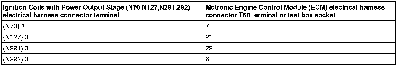 - Replace the faulty Ignition Coils with Power Output Stage (N70, N127, N291, N292). Refer to the repair information.