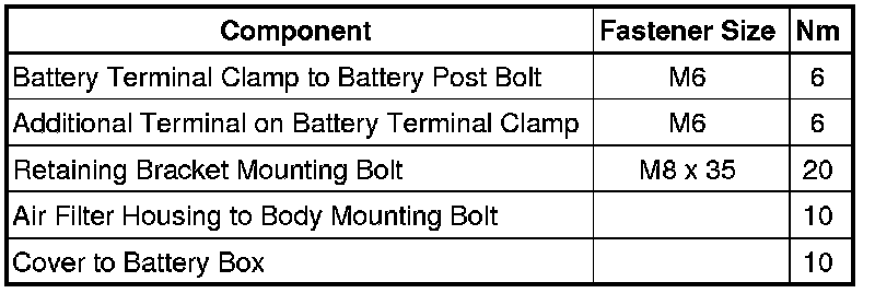 Battery Tightening Specifications