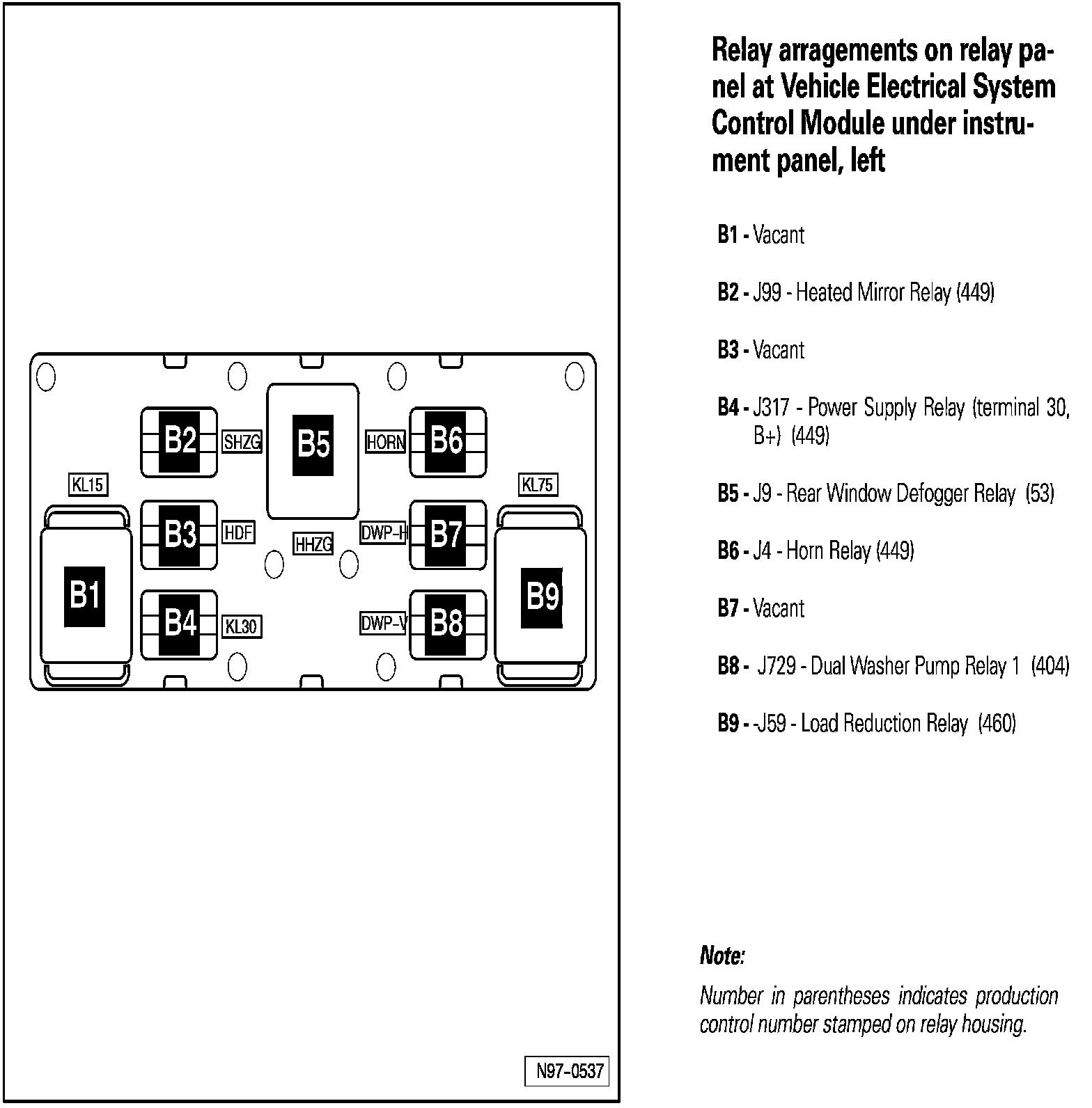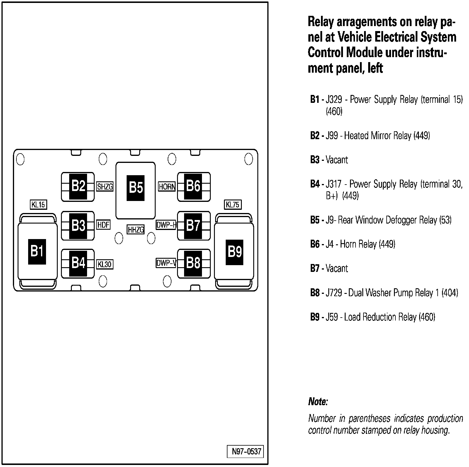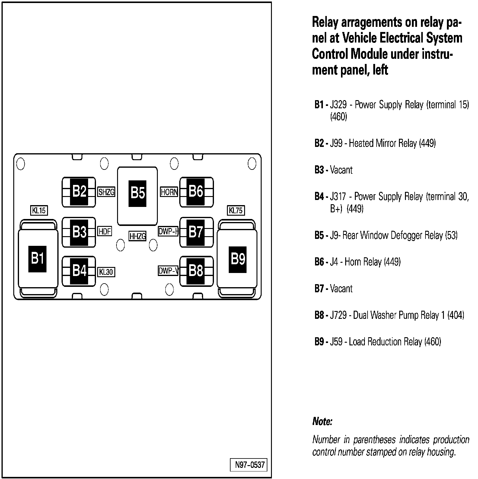 Relay Arrangements on Relay Panel At Vehicle Electrical System Control Module Under Instrument Panel, Left
