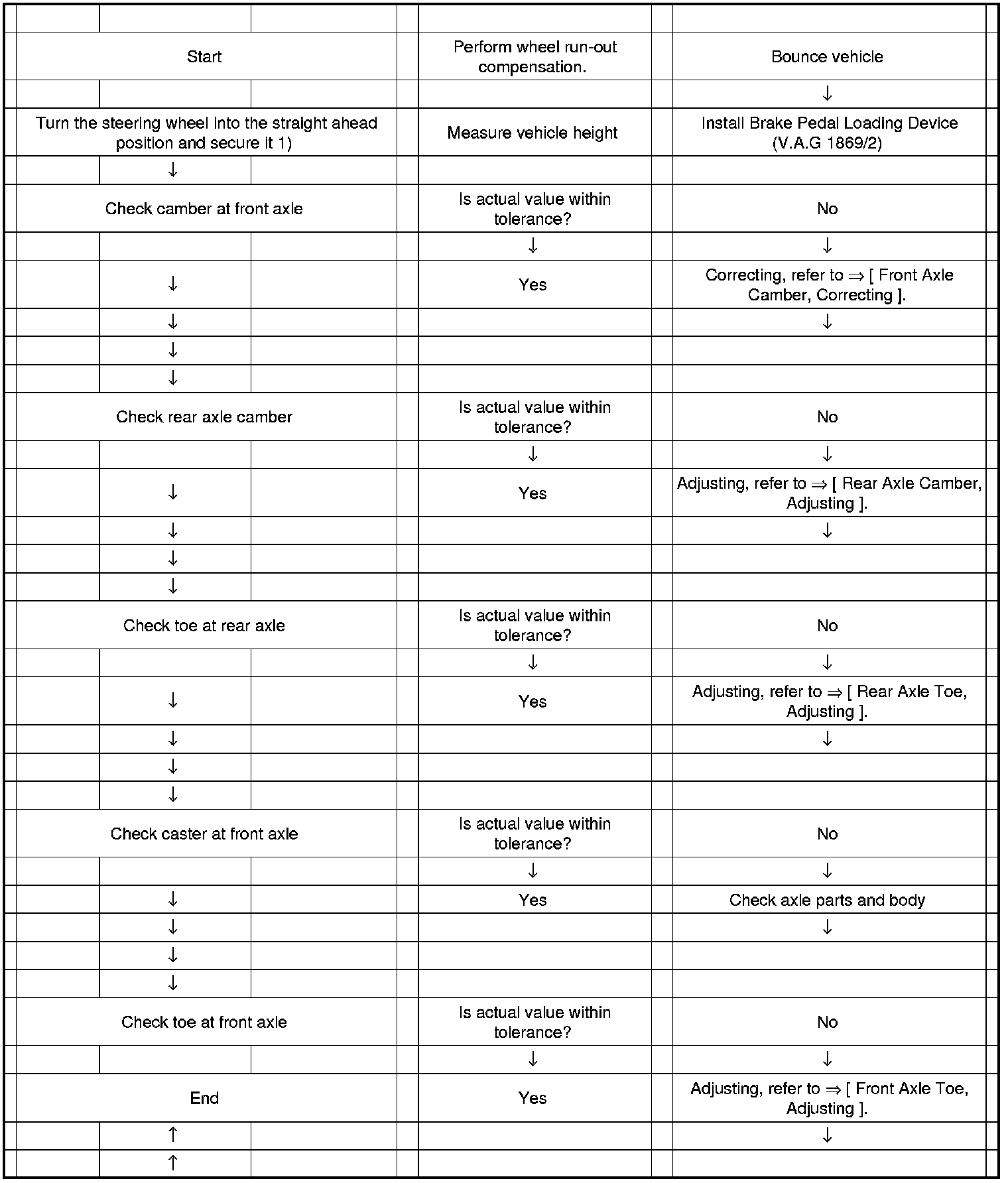 - Pay attention to notes on wheel alignment device