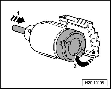 - At the same time, rotate upper part of clutch pedal switch in direction of - arrow 2 - until stop.