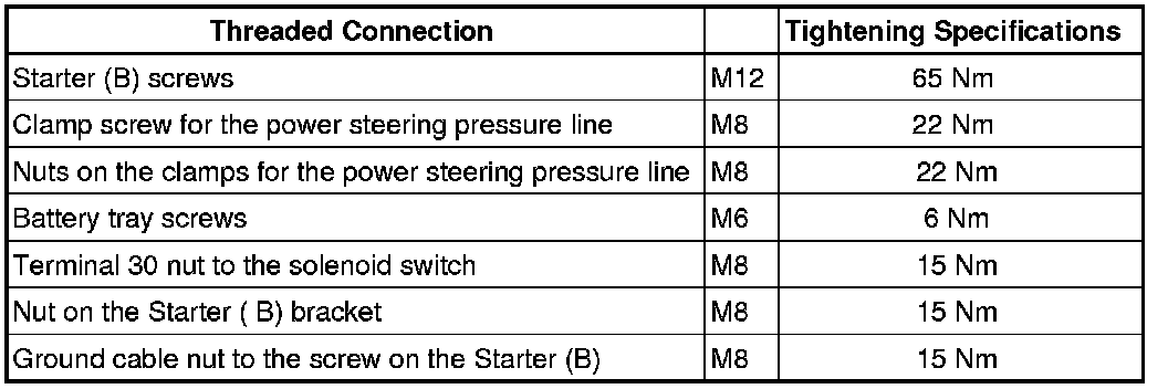 Starter B Tightening Specifications
