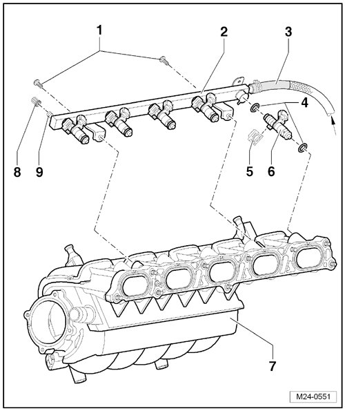 15 - Fuel Injector -N30-, -N31-, -N32-, -N33- and -N83- => [ Fuel Rail and Fuel Injectors Overview ] See Image Below.