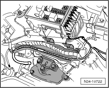 - Lower the (V.A.G 1383 A) and guide the steering gear wiring harness back.