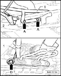- Remove bolt - arrow B - and slide exhaust pipe of auxiliary heater - 1 - upward.