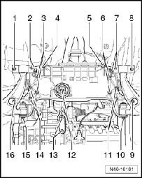 - Lower subframe using engine/transmission jack V.A.G. 1383 A.