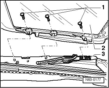- Insert the sunroof panel from above and install the guide rail/panel mounting bolts.