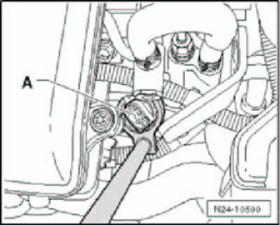 - Remove the connector from the fuel pressure sensor - A - and remove the sensor with an open end wrench.