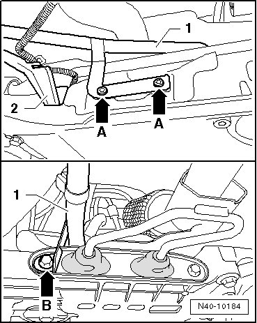 - Remove bolt - arrow B - and slide exhaust pipe of auxiliary heater - 1 - upward.