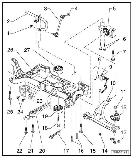 CAUTION! From model year 08, in the 02Q manual transmission, the pendulum support threaded connections are equipped with Heli-Coil(R) inserts.