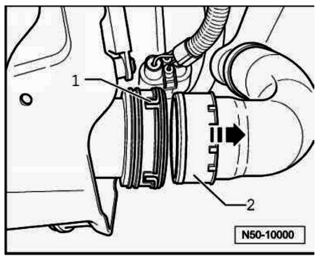 - Disengage connector coupling -1- and disconnect pressure hose -2- in - direction of -arrow- from coupling.