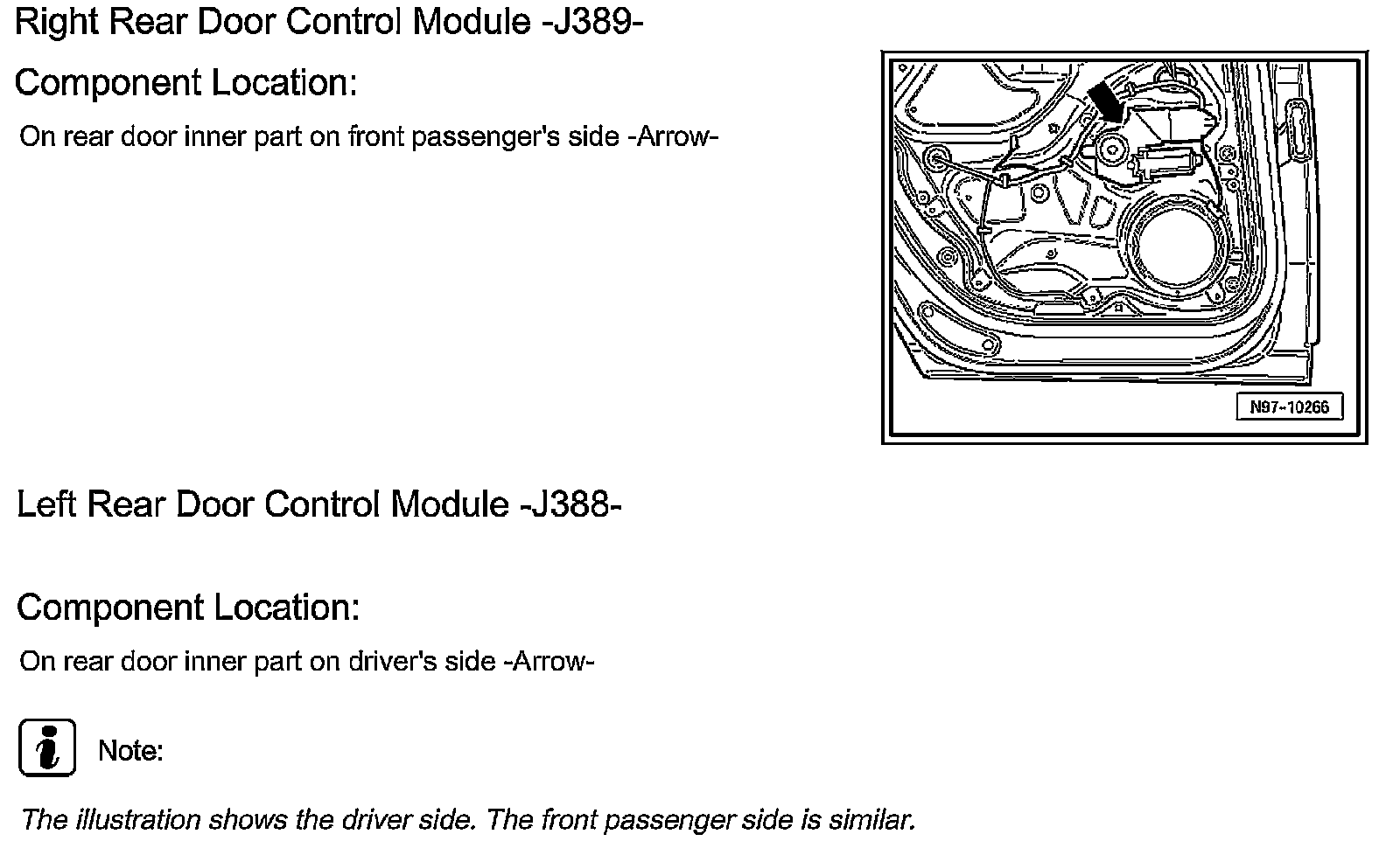 Right Rear Door Control Module J389, Left Rear Door Control Module J388: