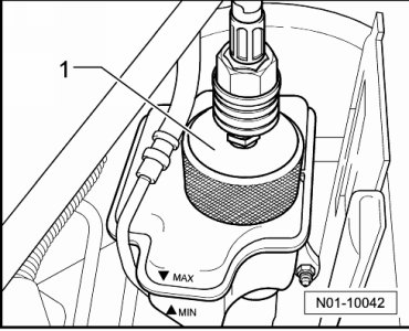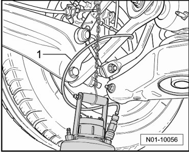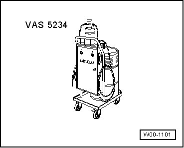- Extract as much brake fluid as possible using intake hose Brake charger/bleeding unit (VAS 5234).